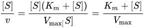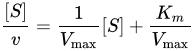[S] をかけると、 変形すると、 となる。 上式から明らかなように、完璧なデータからは傾き1/Vmax、y切片Km/Vmax、x切片−Kmの直線が得られる。 ミカエリス・メンテン式を線型化するその他の手法と同様に、ヘインズ=ウルフプロットはKm、Vmax、Vmax/Kmといった重要な反応速度論的パラメータを迅速に決定するために歴史的に使用されていたが、はるかに正確である非線型回帰手法に取って代わられている。しかしながら、データをグラフを使って示す方法としては引き続き有用である。 ヘインズ=ウルフプロットの1つの欠点は、縦座標と横座標のどちらも独立変数を表わさない点である(どちらも基質濃度に依存している)。その結果、適合度の典型的な指標である相関係数Rを適用できない。 脚注1. ^ Haldane, J. B. S. (20 April 1957). “Graphical Methods in Enzyme Chemistry”. Nature 179 (832). doi:10.1038/179832b0. 2. ^ Hanes, CS (1932). “Studies on plant amylases: The effect of starch concentration upon the velocity of hydrolysis by the amylase of germinated barley.”. Biochemical Journal 26 (5): 1406–1421. PMC 1261052. PMID 16744959 . 関連項目 |