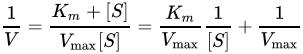 ら インウィーバー=バークプロット生化学において、ラインウィーバー=バークプロット(英: Lineweaver–Burk plot)は、酵素反応速度論のラインウィーバー=バークの式のグラフ表示である。1934年にハンス・ラインウィーバーとディーン・バークによって記述された[1]。二重逆数プロットとも呼ばれる。 導出ラインウィーバー=バークプロットは、ミカエリス・メンテン式 の解析に有用なグラフ的手法である。 両辺の逆数を取ると、 となる。上式においてVは反応速度、Kmはミカエリス・メンテン定数、Vmaxは最大反応速度、[S] は基質濃度である。 使用強力な計算機や非線型回帰ソフトウェアが広く利用可能になる前、ラインウィーバー=バークプロットはKmやVmaxといった酵素反応速度論における重要な項を決定するために広く使われていた。グラフのy切片はVmaxの逆数と等しく、グラフのx切片は−1/Kmを表わす。また、様々な酵素阻害の形式を視覚的な印象として素早く与える。 この両逆数プロットはデータの誤差構造を歪めるため、酵素反応速度論のパラメータを決定する方法として信頼できない。反応速度に関するデータを描写するためには今でも使用されているものの[2]、非線型回帰あるいはヘインズ=ウルフプロットあるいはイーディー=ホフステー図といったミカエリス・メンテン式の代替となる線型形式がパラメータの計算のために一般的に使われている[3]。 酵素阻害の種類を決定するために使用すると、ラインウィーバー=バークプロットは競合、非競合、不競合阻害剤を区別することができる。競合阻害剤は阻害を受けていない酵素と同じy切片を持つが(競合阻害剤はVmaxに影響を与えないため、Vmaxの逆数も変化しない)、2組のデータ間で傾きとx切片に違いがある。非競合阻害剤は阻害を受けていない酵素と同じx-切片を与えるが(Kmが影響を受けない)、傾きとy切片が異なる。不競合阻害剤はy軸とx軸両方の切片に違いが出る。 問題点ラインウィーバー=バークプロットは古い教科書では古典的に用いられているが、間違いが生まれやすい。y軸が反応速度の逆数を取るため、測定における小さな誤差が増幅される。また、プロット上の多くの点がy軸の右側に遠く離れた位置にあるため(溶解性に限度があるため [S] が大きな値を取れず、ゆえに1/[S] が小さな値を取れない)、x切片およびy切片を得るために大きな外挿が要求される[4]。 脚注1. ^ Lineweaver, H and Burk, D. (1934). “The Determination of Enzyme Dissociation Constants”. J. Am. Chem. Soc. 56 (3): 658–666. doi:10.1021/ja01318a036. 2. ^ Hayakawa, K.; Guo, L.; Terentyeva, E.A.; Li, X.K.; Kimura, H.; Hirano, M.; Yoshikawa, K.; Nagamine, T. et al. (2006). “Determination of specific activities and kinetic constants of biotinidase and lipoamidase in LEW rat and Lactobacillus casei (Shirota)”. J Chromatogr B Analyt Technol Biomed Life Sci 844 (2): 240–50. doi:10.1016/j.jchromb.2006.07.006. PMID 16876490. 3. ^ Greco, W. R. and Hakala, M. T., (1979). “Evaluation of methods for estimating the dissociation constant of tight binding enzyme inhibitors” (PDF). J. Biol. Chem. 254 (23): 12104–12109. PMID 500698 . 4. ^ Dowd, John E., and Douglas S. Riggs (1965). “A comparison of estimates of Michaelis-Menten kinetic constants from various linear transformations”. J. Biol. Chem. 240 (2): 863-869. PMID 14275146. 関連項目外部リンク