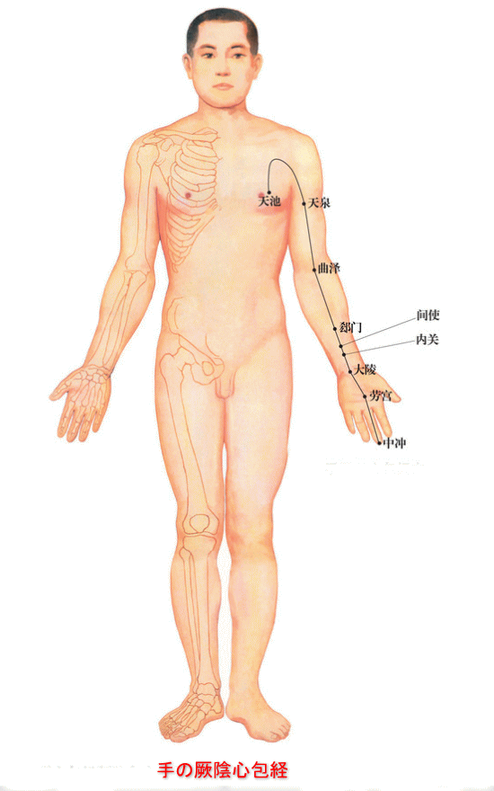 「げき」=隙間、集まるところ。尺骨と橈骨の間という意味と、心包経の気血が一番集まる門戸という意味がある。