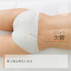 取穴部位:第2後仙骨孔部、上後腸骨棘の高さで取穴